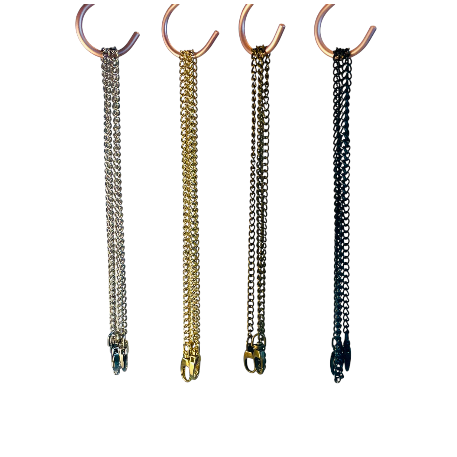 Metal chain for your bag with carabiner hook on each end. You can change the length if you double it.