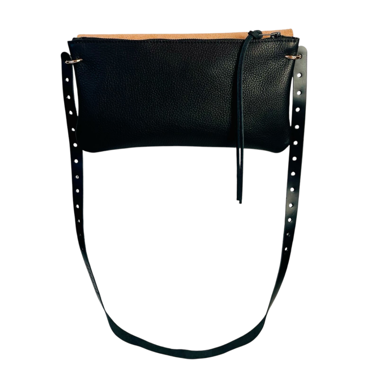 The Fab Bag comes with a leather strap which has punched holes on both ends (first 11 inches). The snap ring allows you to adjust the length of the strap, enabling different ways and styles to wear your bag.