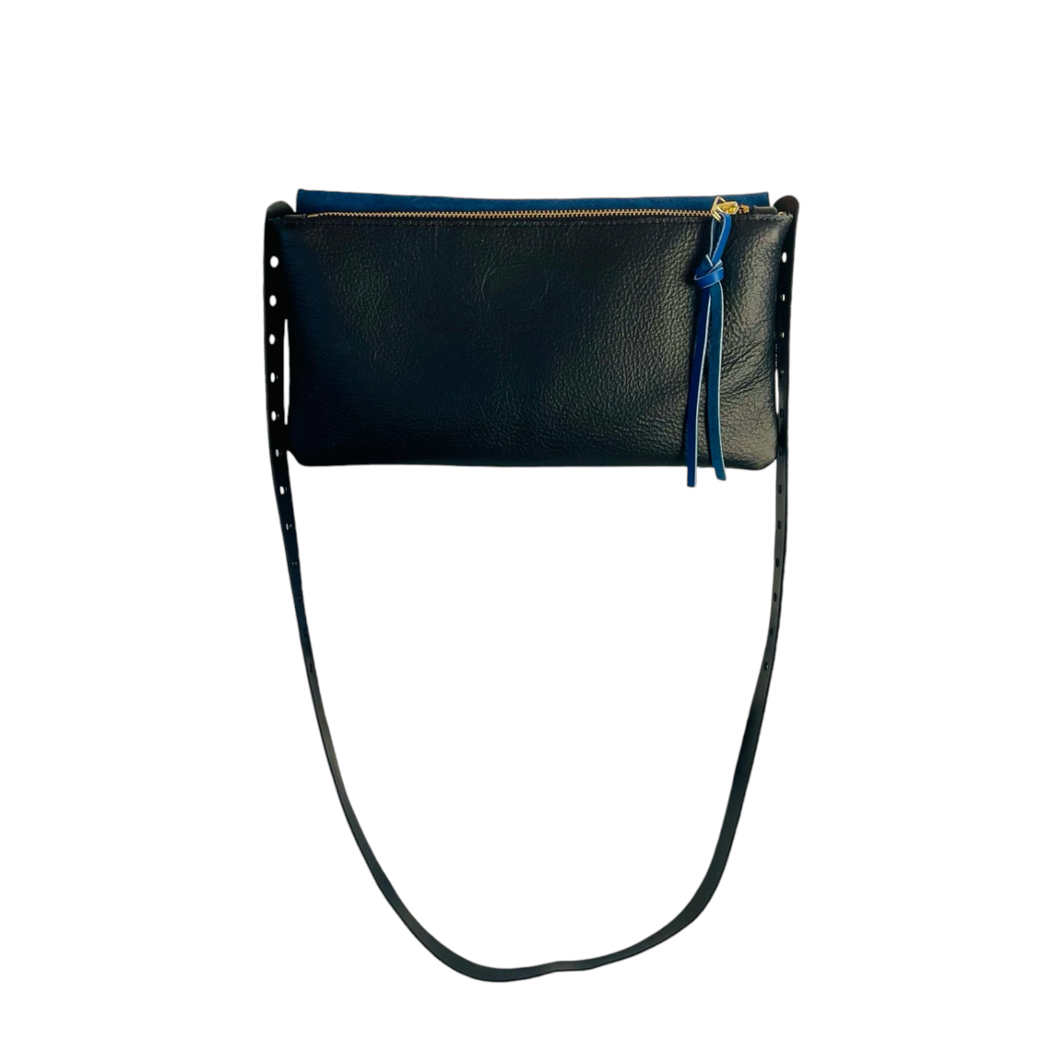 The Fab Bag comes with a leather strap which has punched holes on both ends (first 11 inches). The snap ring allows you to adjust the length of the strap, enabling different ways and styles to wear your bag.