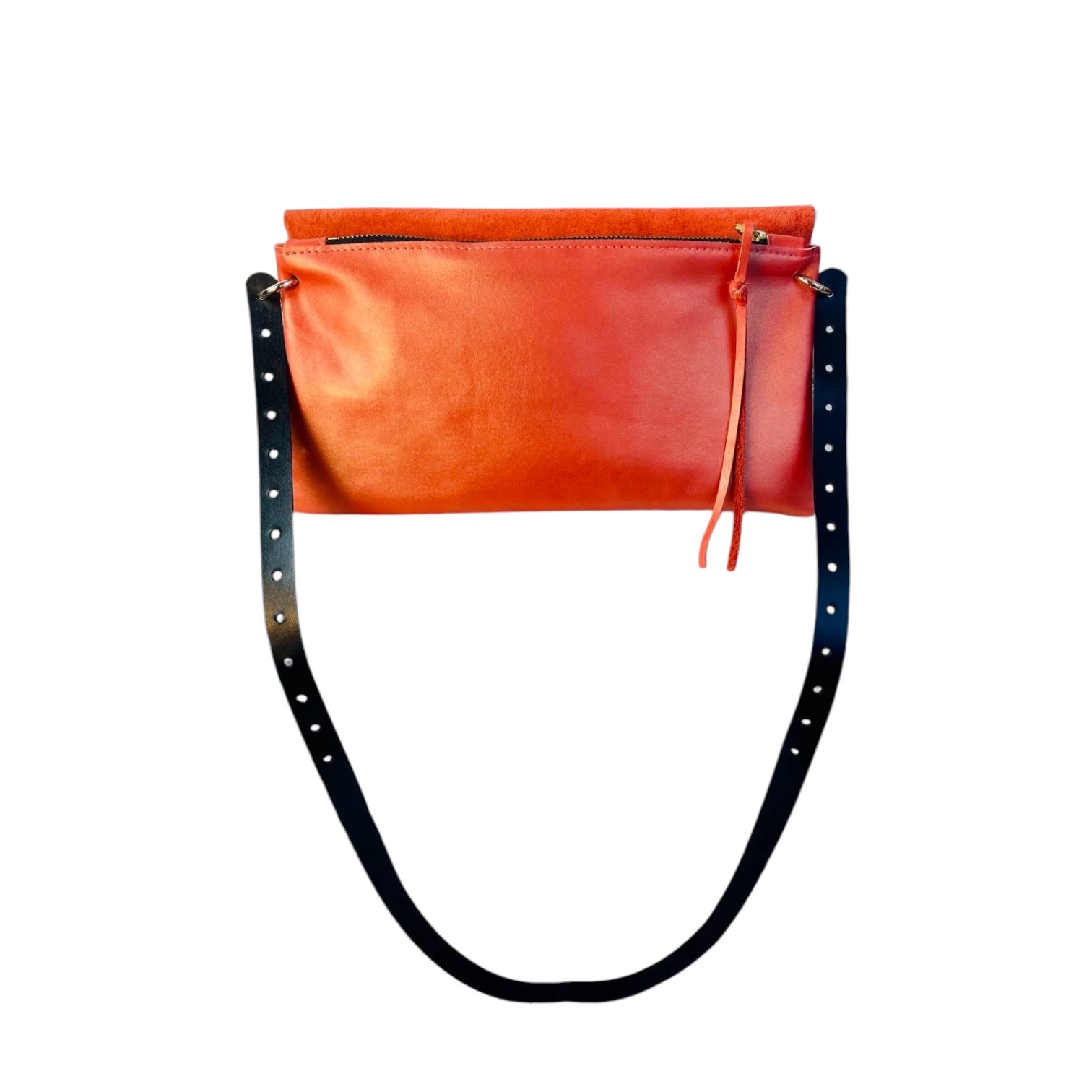 The Fab Bag comes with a leather strap which has punched holes on both ends (first 11 inches). The snap ring allows you to adjust the length of the strap, enabling different ways and styles to wear your bag.