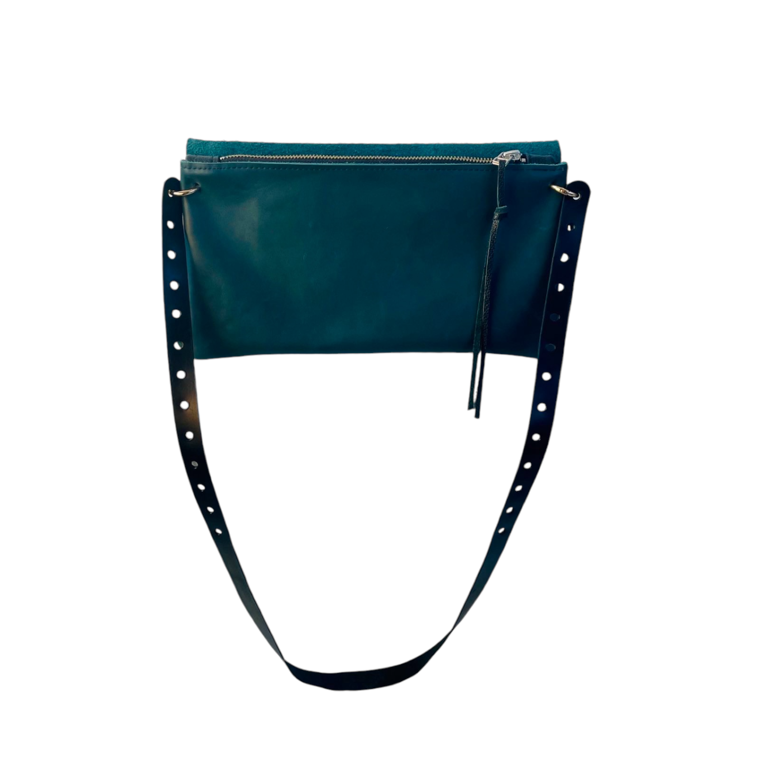 The Fab Bag comes with a leather strap which has punched holes on both ends (first 11 inches). The snap ring allows you to adjust the length of the strap, enabling different ways and styles to wear your bag.