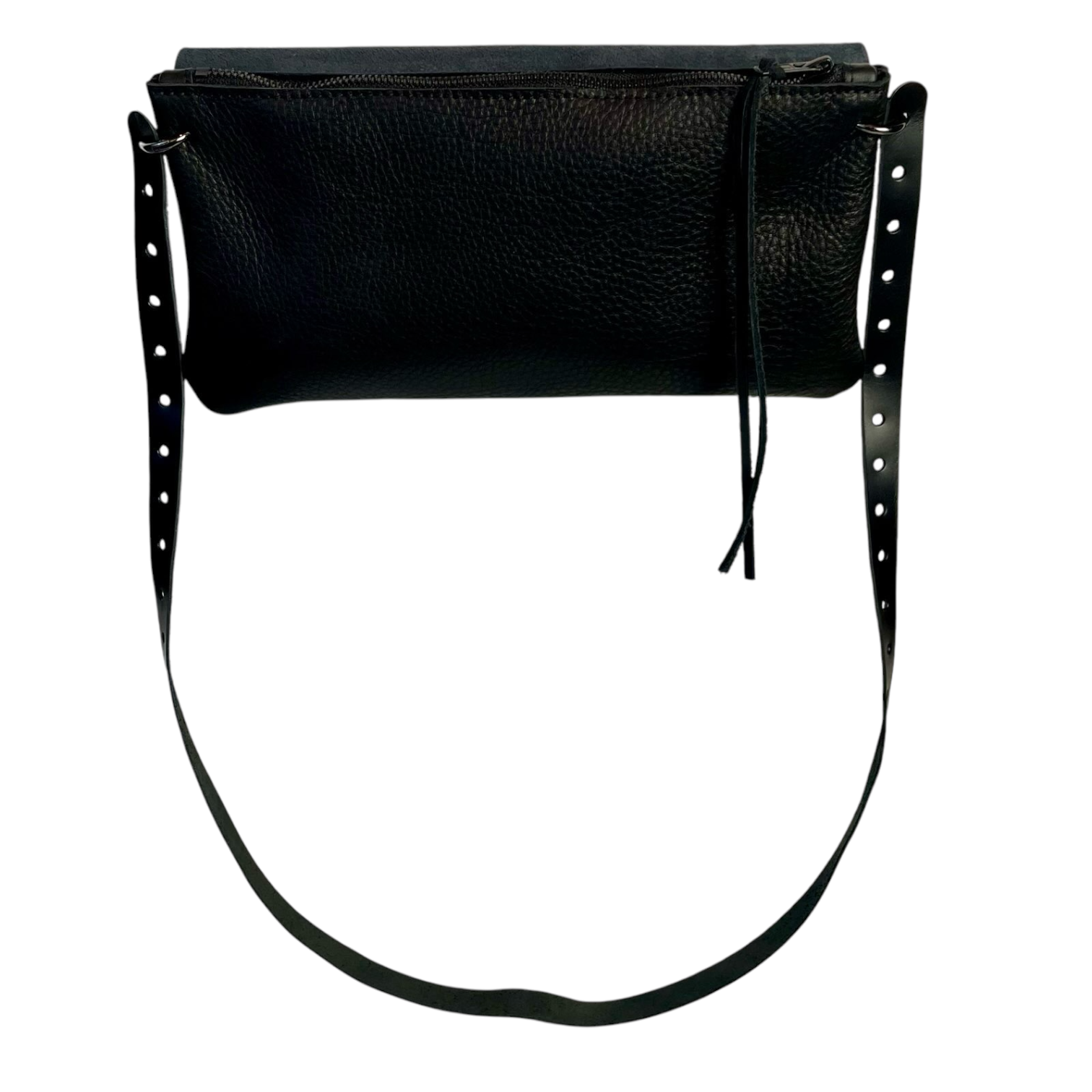 The Fab Bag comes with a leather strap which has punched holes on both ends (first 11 inches). The snap ring allows you to adjust the length of the strap, enabling different ways and styles to wear your bag.