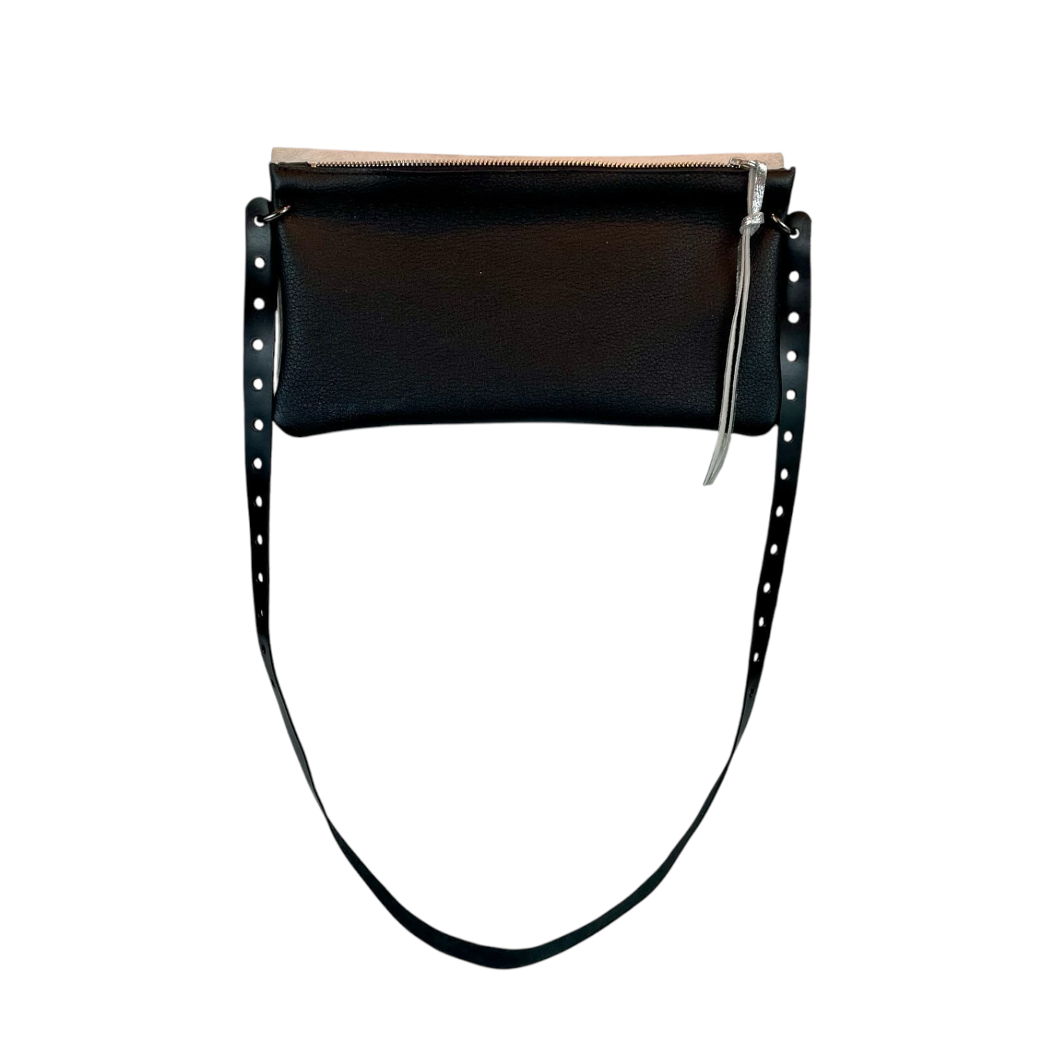 The Fab Bag comes with a leather strap which has punched holes on both ends (first 11 inches). The snap ring allows you to adjust the length of the strap, enabling different ways and styles to wear your bag.