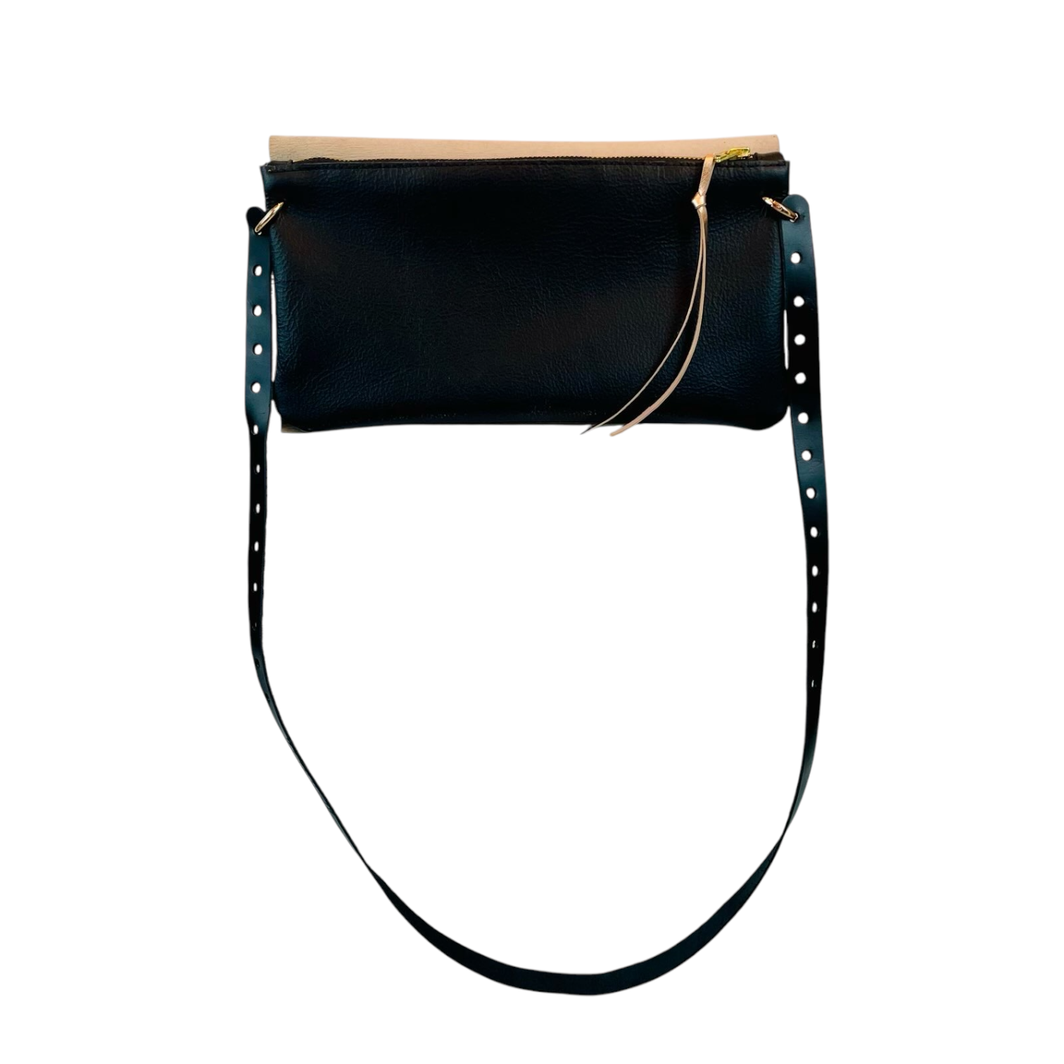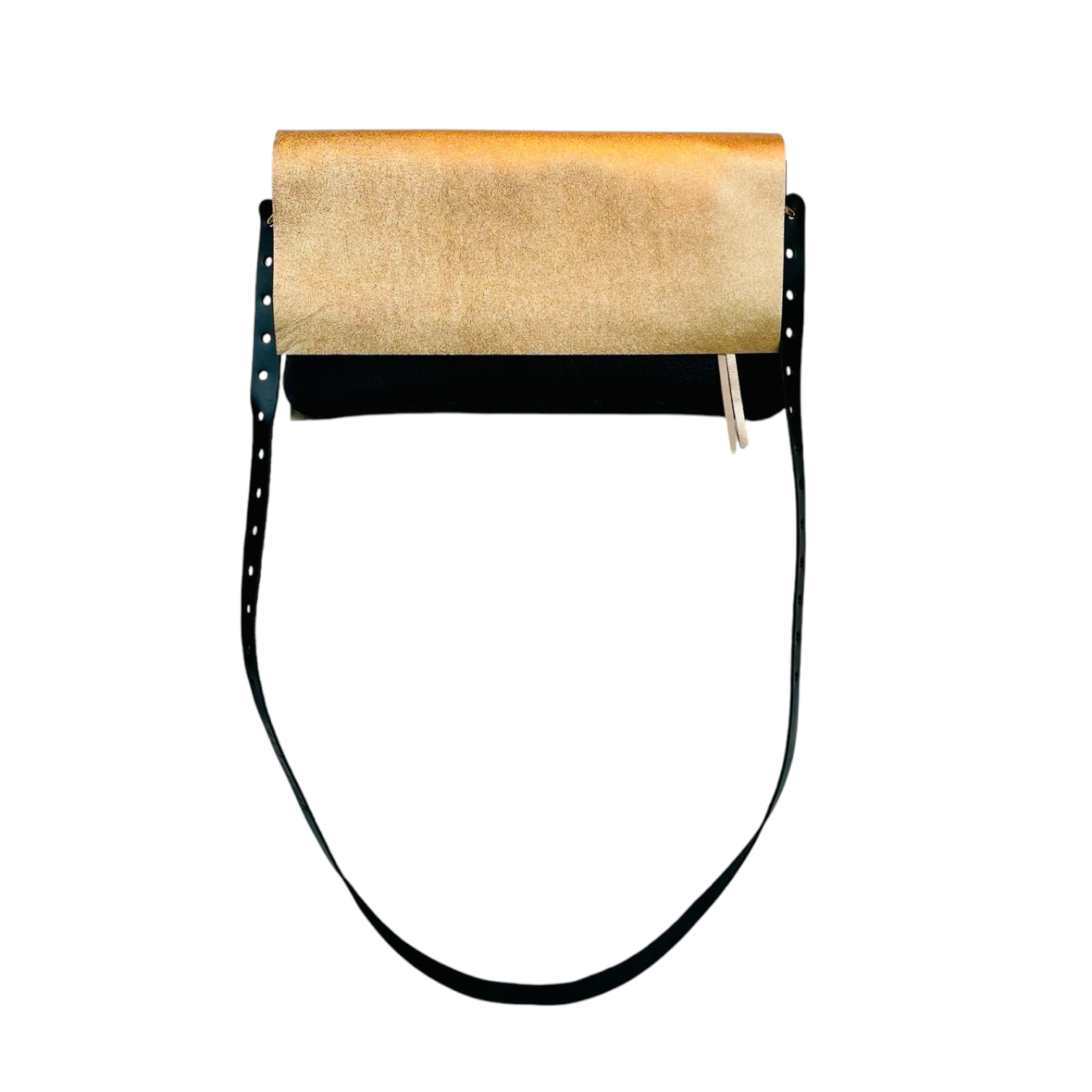 The Fab Bag comes with a leather strap which has punched holes on both ends (first 11 inches). The snap ring allows you to adjust the length of the strap, enabling different ways and styles to wear your bag.