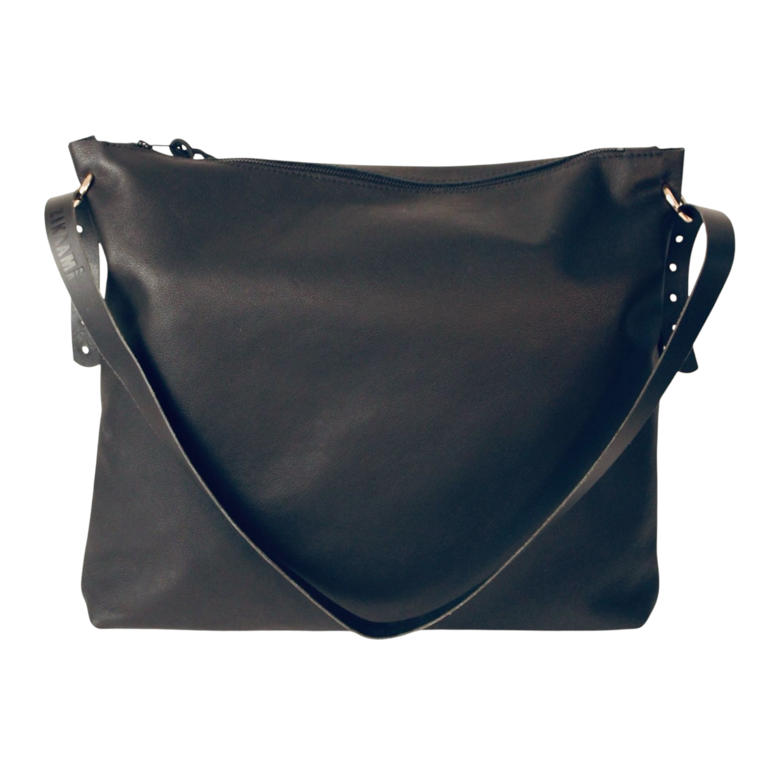 The Perfect Bag comes with a wide leather strap. The snap ring allows you to adjust the length of the strap, enabling different ways and styles to wear your bag.