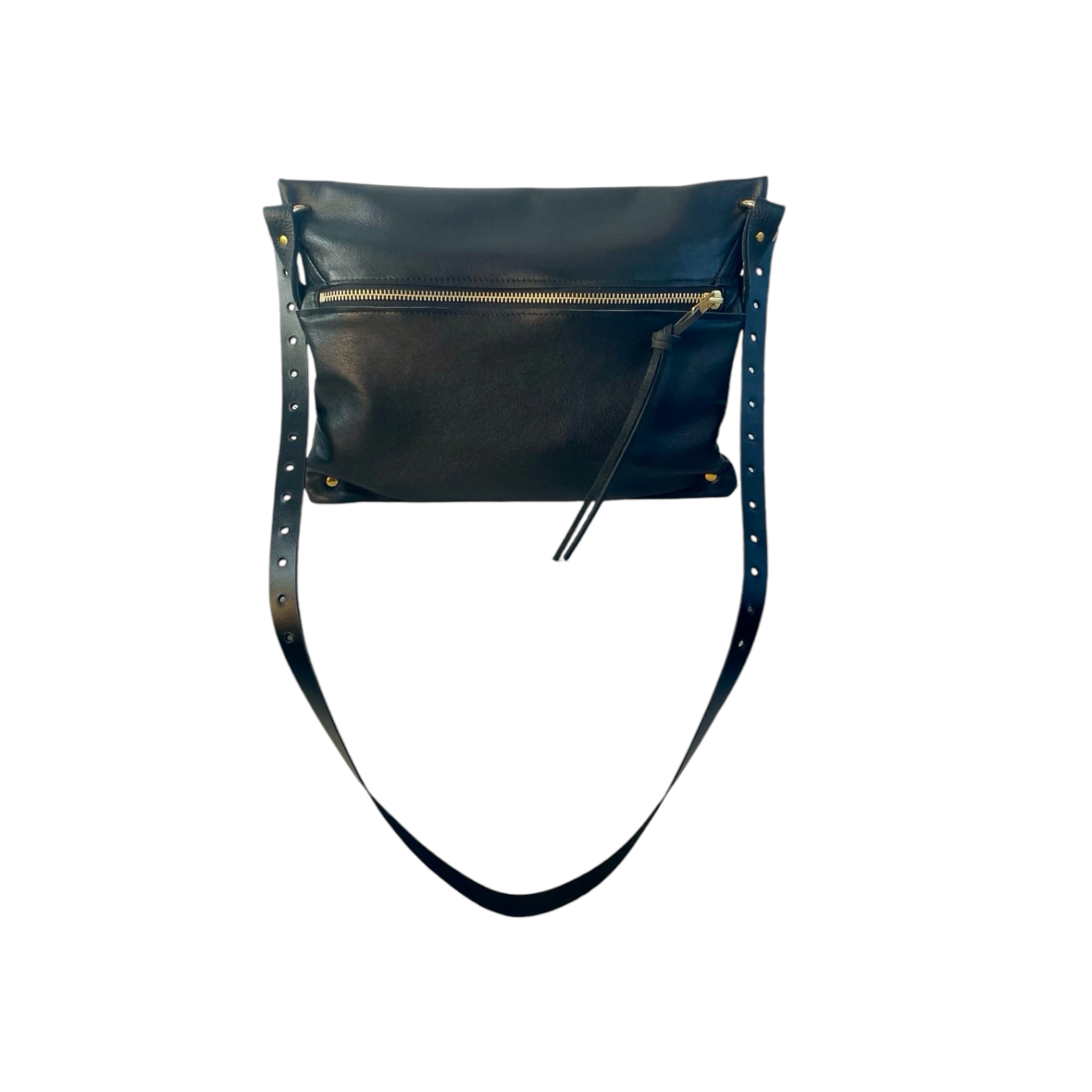 The Simple Bag comes with a leather strap which has punched holes on both ends (first 11 inches). The snap ring allows you to adjust the length of the strap, enabling different ways and styles to wear your bag.