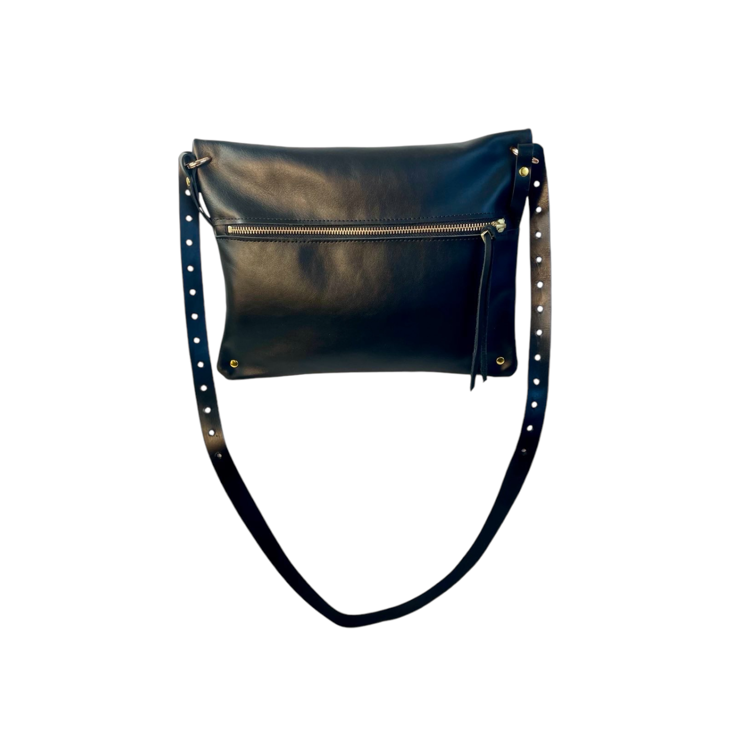 The Simple Bag comes with a leather strap which has punched holes on both ends (first 11 inches). The snap ring allows you to adjust the length of the strap, enabling different ways and styles to wear your bag.