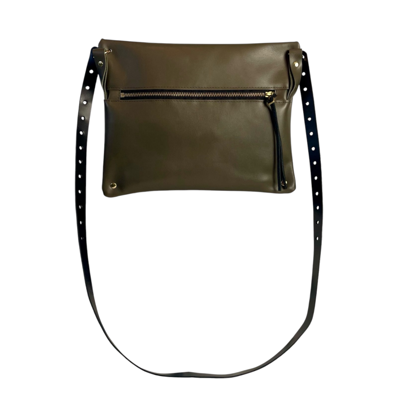 The Simple Bag comes with a leather strap which has punched holes on both ends (first 11 inches). The snap ring allows you to adjust the length of the strap, enabling different ways and styles to wear your bag.