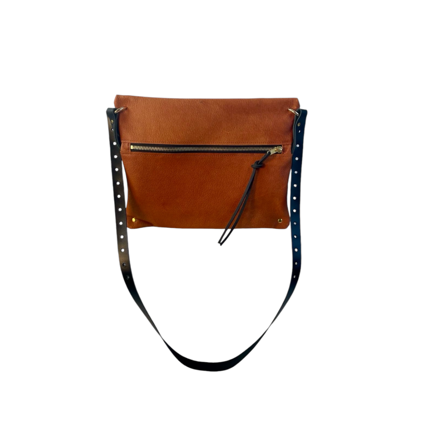The Simple Bag comes with a leather strap which has punched holes on both ends (first 11 inches). The snap ring allows you to adjust the length of the strap, enabling different ways and styles to wear your bag.