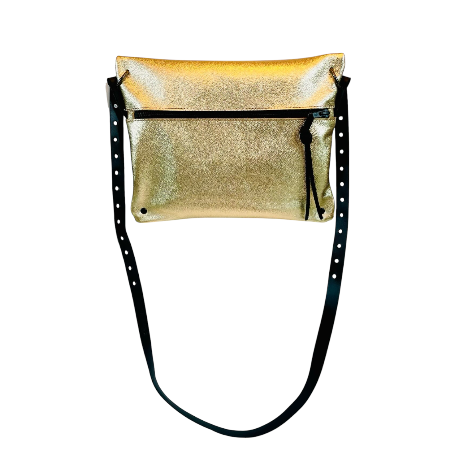 The Simple Bag comes with a leather strap which has punched holes on both ends (first 11 inches). The snap ring allows you to adjust the length of the strap, enabling different ways and styles to wear your bag.